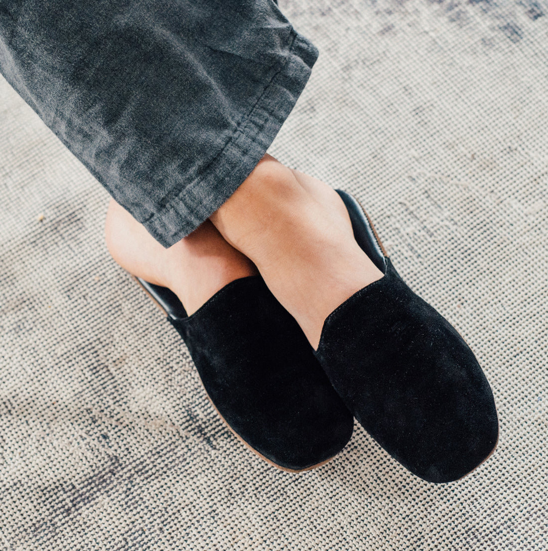 Lino ist ein flacher Herrenpantoffel, handgefertigt aus feinem Rindsvelours. Innen ist er mit weichem Ziegenleder gefüttert und mit einer angenehm gepolsterten Innensohle ausgestattet. Ein Modell, das durch Schlichtheit, edle Materialien und hohen Tragekomfort überzeugt.