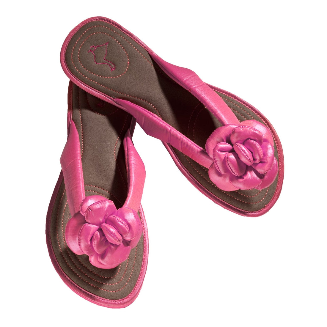 Leichte Sommersandale mit angenehm gepolsterten Riemen und weichem Fußbett und ausdruckstarkem Blumenornament.