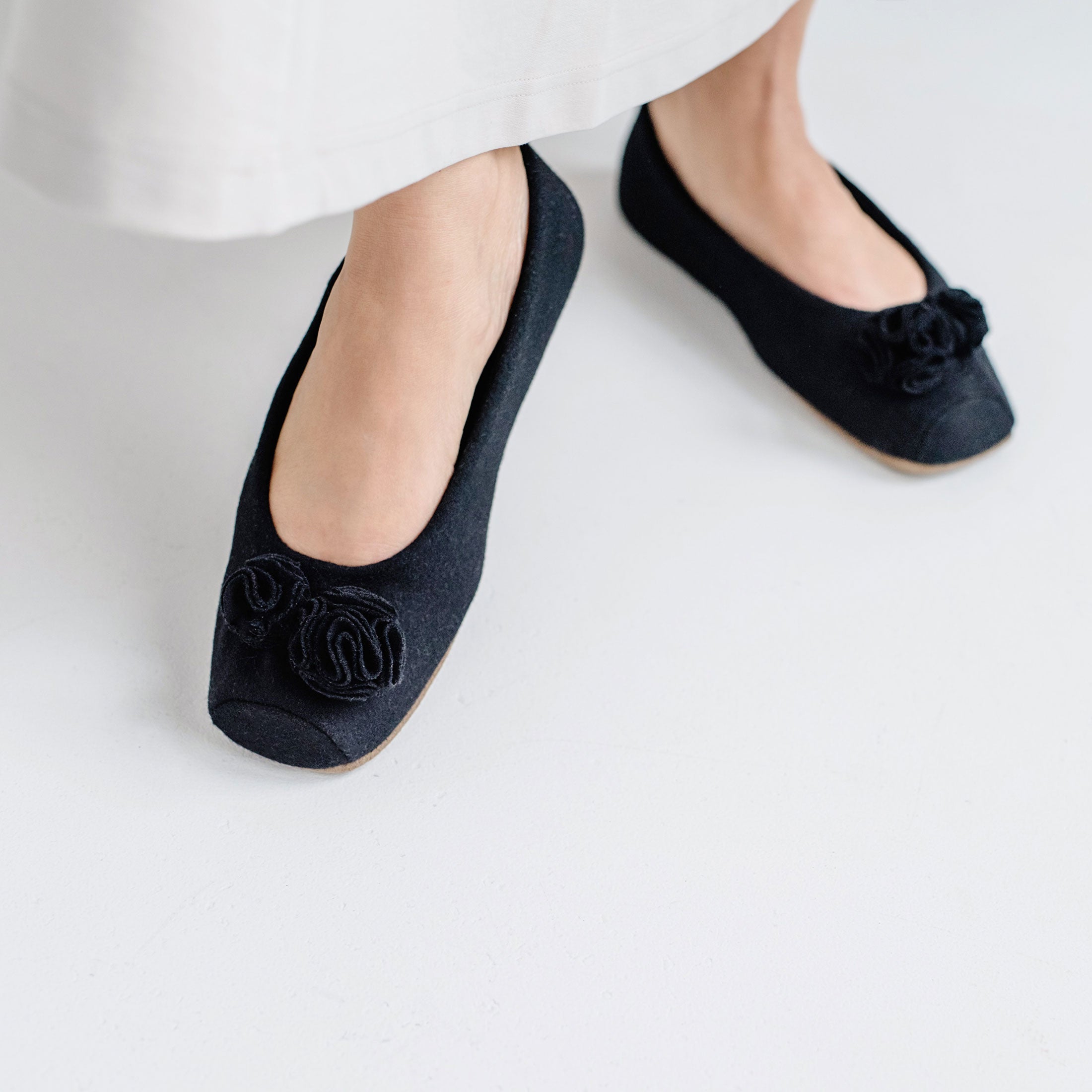 Die Primaballerina unserer Kollektion: eher schmal geschnitten und mit Zehenbox versehen wirkt sie fast wie ein echter Ballettschuh – und ist doch ganz weich, flexibel und warm. Und mit ihrer Blüte einfach wunderschön.