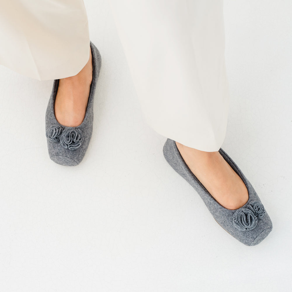Die Primaballerina unserer Kollektion: eher schmal geschnitten und mit Zehenbox versehen wirkt sie fast wie ein echter Ballettschuh – und ist doch ganz weich, flexibel und warm. Und mit ihrer Blüte einfach wunderschön.